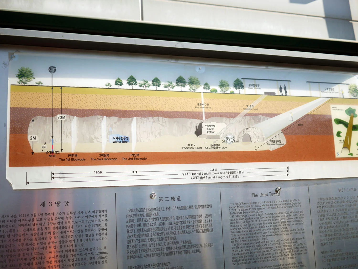 O ponto alto do tour foi uma breve incursão por um dos vários túneis feitos pelos norte coreanos com a idéia de um dia invadir a Coréia do Sul. Infelizmente só deu pra tirar a foto do desenho devido ao super controle de segurança...